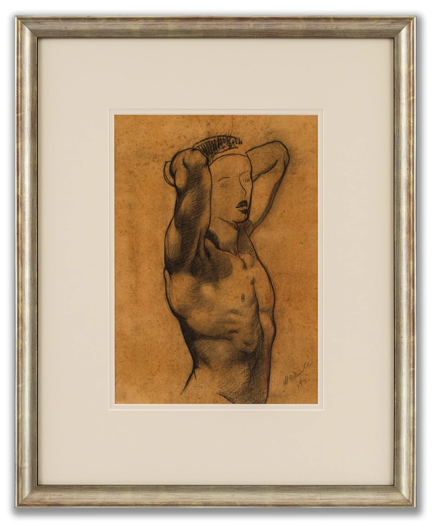 Throughout his career, but especially in the early years, Hennessy made a living from flower paintings, still-lives and portrait commissions. However, alongside this conventional output, he also created a body of work which was far more personal and, for its time, ground-breaking. He addressed issues of masculinity, sexual identity and homosexuality, which, for post-war Ireland where it was still illegal and considered morally repugnant, was highly extraordinary and extremely brave. A major retrospective of Hennessy’s work was held at the IMMA Dublin in 2016. Discovered in Paris, this work is possibly from the period immediately prior to WWII, when Hennessy was briefly resident there.